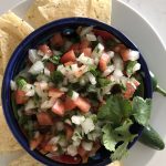 We love Pico de Gallo served next to guacamole and chips for any appetizer or side. I believe the secret is finely dicing the onions, tomatoes, and jalapeno. You want a little of everything in each bite! Make the Pico first and add a few spoonfuls to your avocados and your guacamole is ALMOST done.